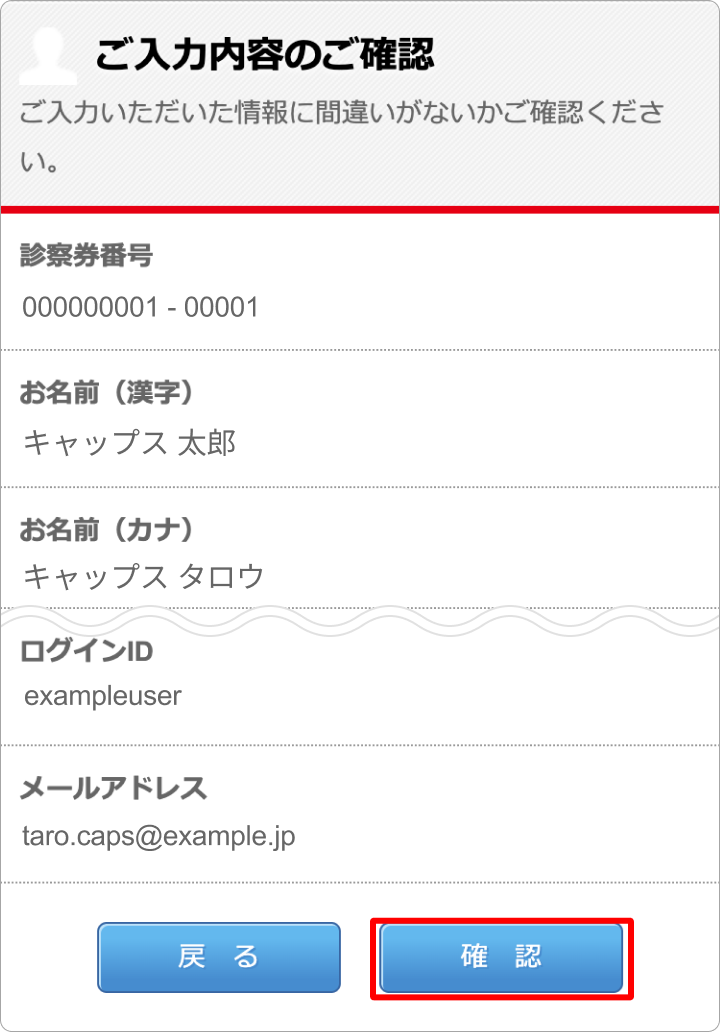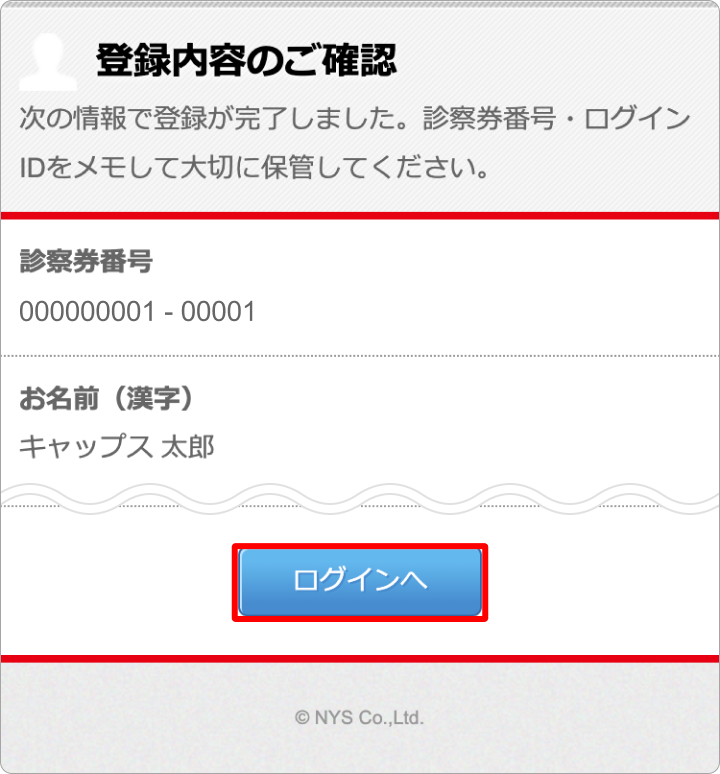 お手元に診察券または診察券番号をご用意の上、下記の手順によりユーザー登録を行うことができます。